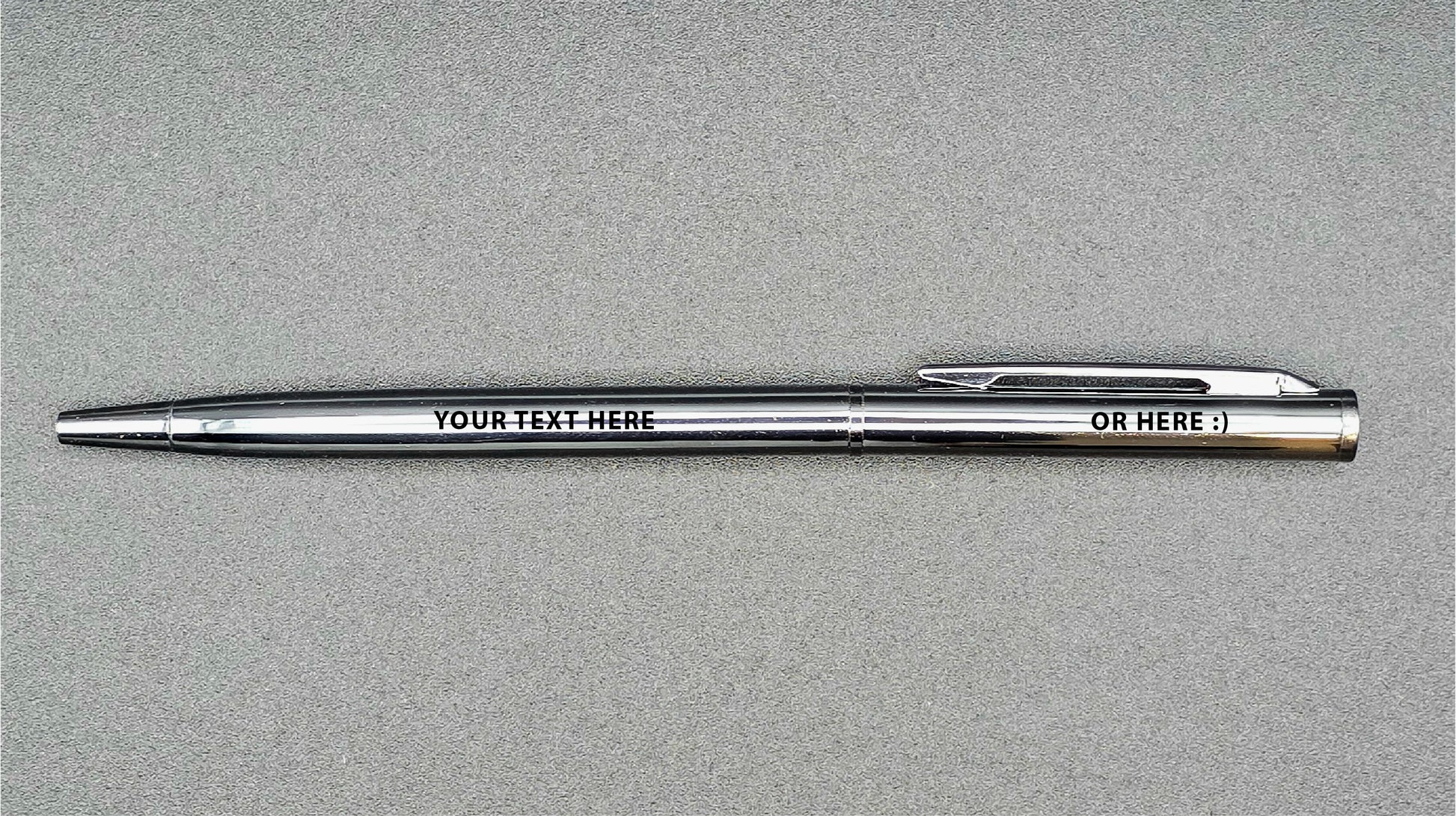 Elevate your brand or gifting with this set of 5 sleek stainless steel pens, each precision laser engraved with your custom text, logo, or message. With a polished silver finish and permanent black engraving, these pens combine elegance with durability – ideal for professional use or thoughtful keepsakes.